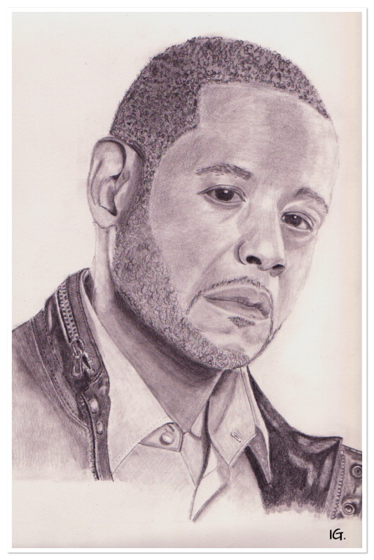 Forest Whitaker met grafietstiften op A4 formaat.