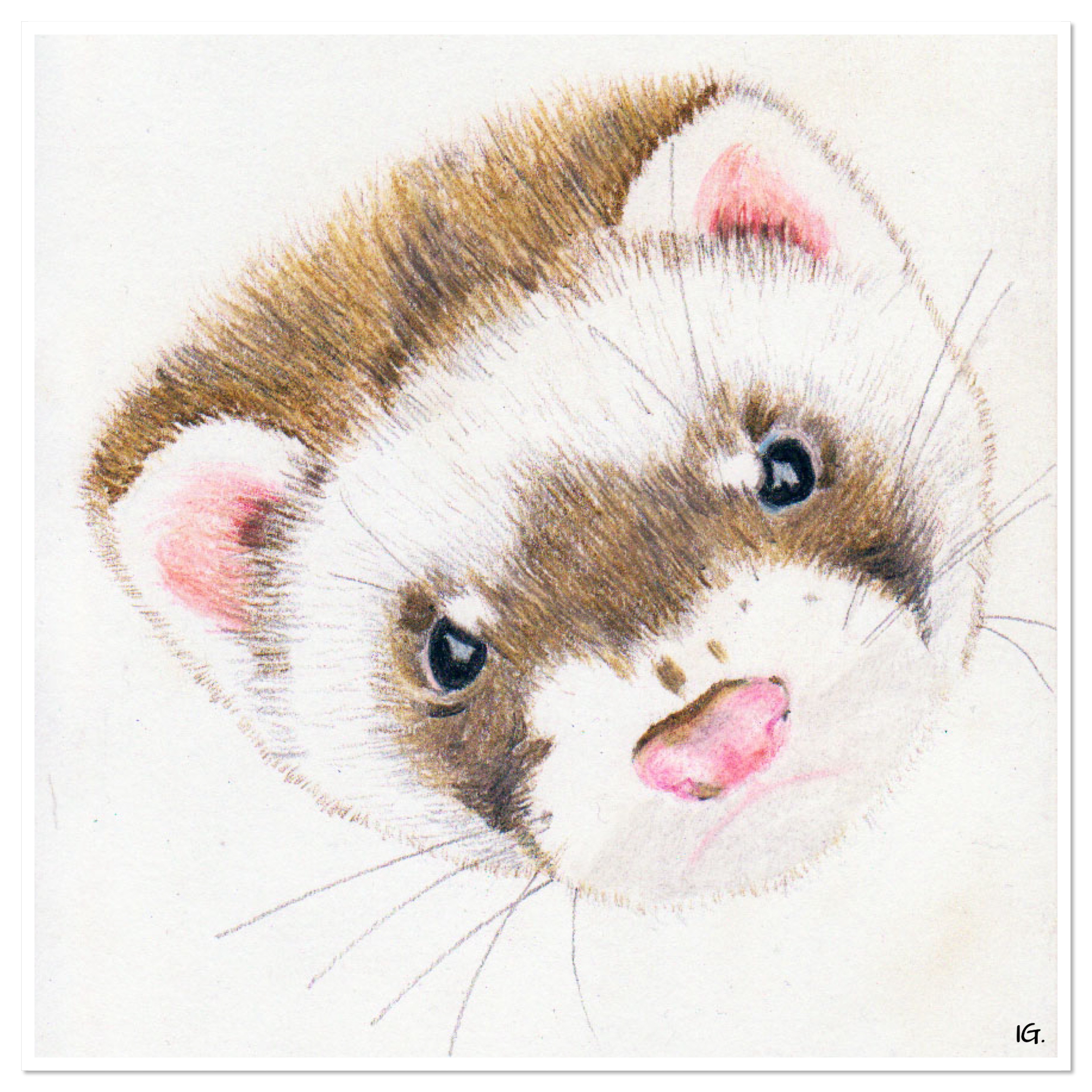 Een poging om onze fret Muppet te tekenen met Derwent Softcolor pencils.