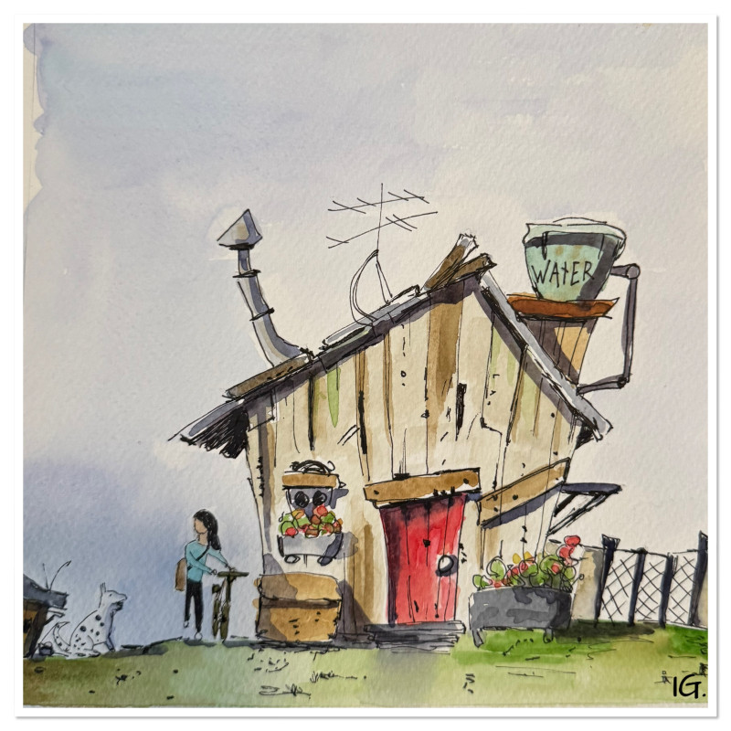 Aquarel en pen op 20x20 cm aquarelpapier.