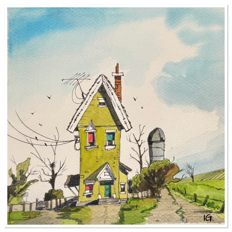 Aquarel en pen op 20x20 cm aquarelpapier.